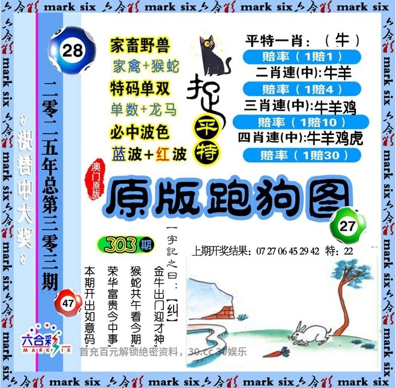 303期:平特【鸡】二连【鸡】三连【鸡猴】